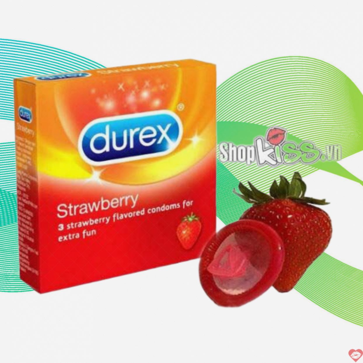 Bao cao su hương dâu Durex Strawberry hộp 3 cái có hương thơm dâu tây cửa hàng rất đổi trả được chị em phụ nữ ưa thích.