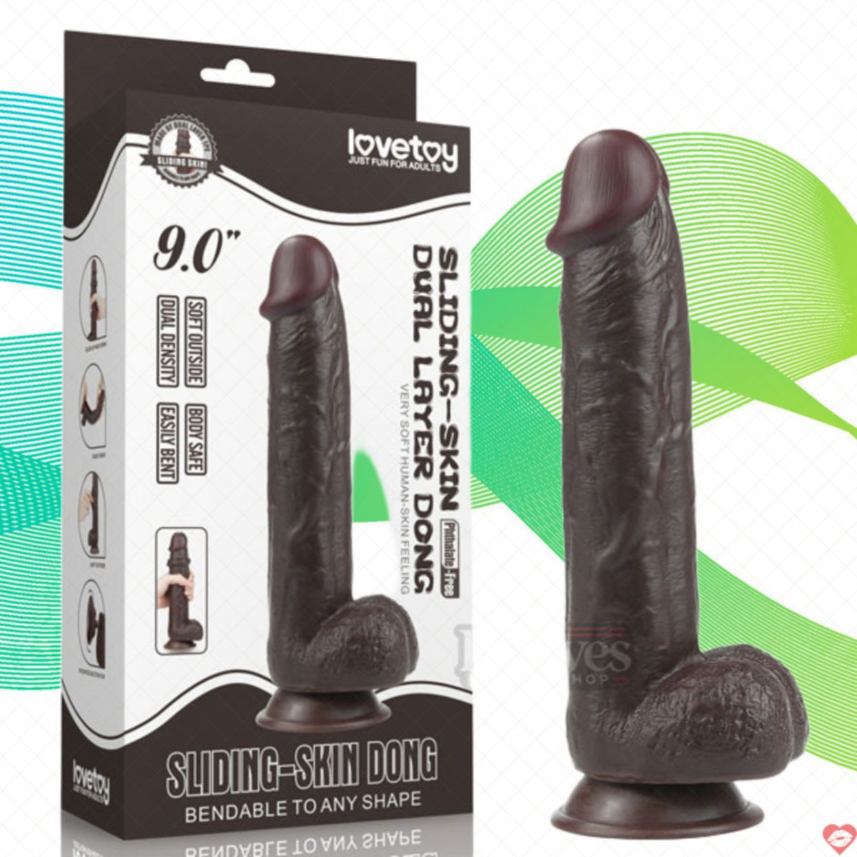 Giới thiệu Dương vật giả gắn tường Lovetoy 9 inch Sliding Skin Dual Layer Dong – Black
